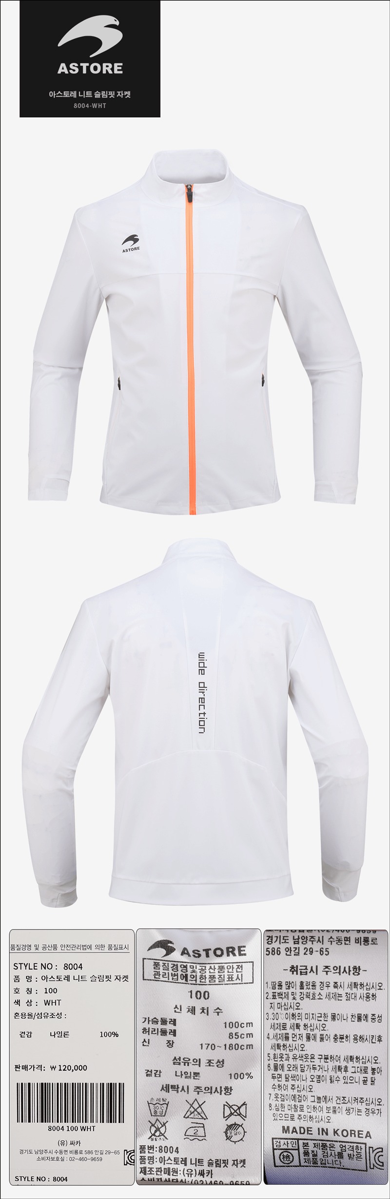 아스토레 트레이닝 상의 니트 슬림핏 경량스판 자켓 - 8004WHT