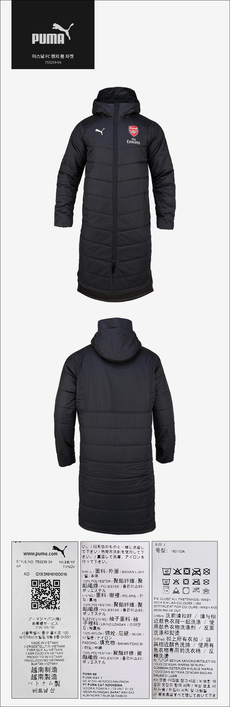 푸마 아스널 FC 벤치 롱 자켓 - 23904