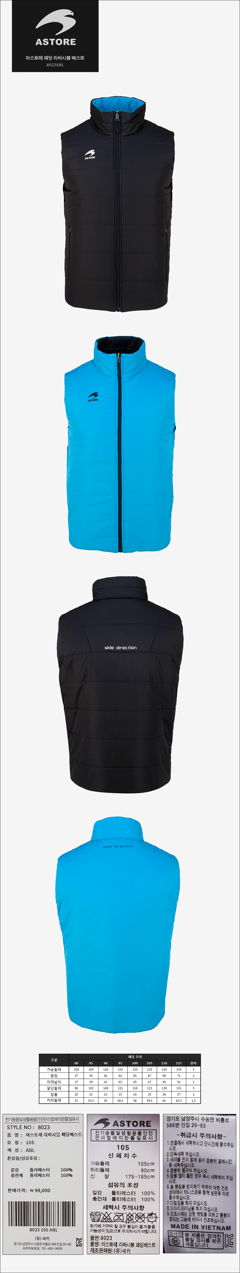 아스토레 패딩 리버시블 베스트 조끼 - 8023ABL